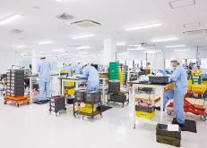 全設備がネットワーク化されたスマートファクトリーとして、半導体工場と同等の最先端技術を導入した製造・組立ラインを構築しています。湿度、温度も管理された食品工場レベルのクリーン度を実現しています。