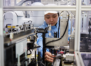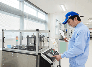 全設備がネットワーク化されたスマートファクトリーとして、半導体工場と同等の最先端技術を導入した製造・組立ラインを構築しています。湿度、温度も管理された食品工場レベルのクリーン度を実現しています。